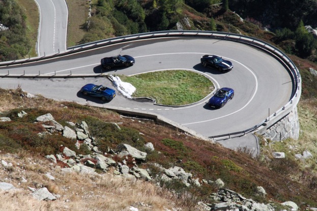 Day Two saw the Ferraris take on two of Switzerland’s most iconic Alpine passes – the Grimsel and the Furka. The day’s highlight included a stop at the historic Hotel Grimsel Hospiz, overlooking the stunning Grimselsee Lake, before arriving at Radisson Blu Andermatt: an Alpine haven offering panoramic views and refined relaxation.
